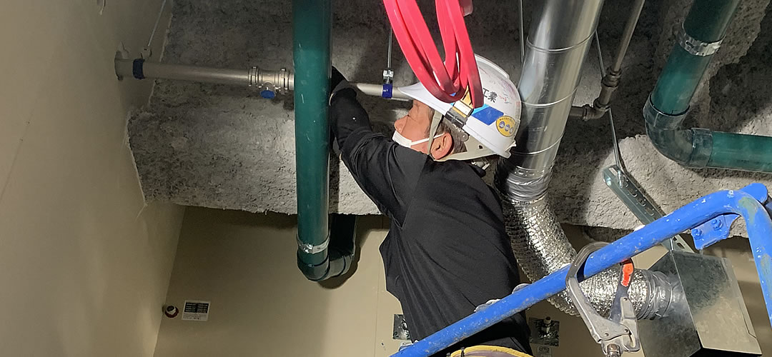 公共工事や一般住宅工事での水道・衛生設備工事全般および浄化槽工事・ガス工事等での配管作業です。