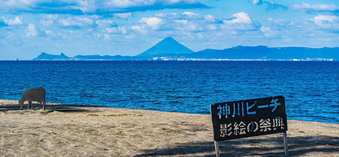 錦江町といえば神川大滝が有名ですが、私は、山があって、神ノ川から神川海岸へ流れ込む一連の景色が好きです。