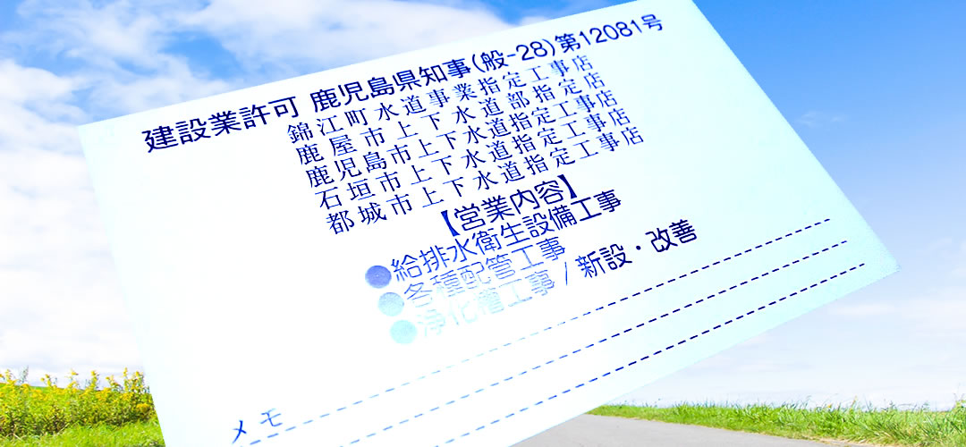水道事業指定工事店(錦江町)・上下水道指定工事店(鹿屋市・鹿児島市・沖縄県石垣市・宮崎県都城市)
